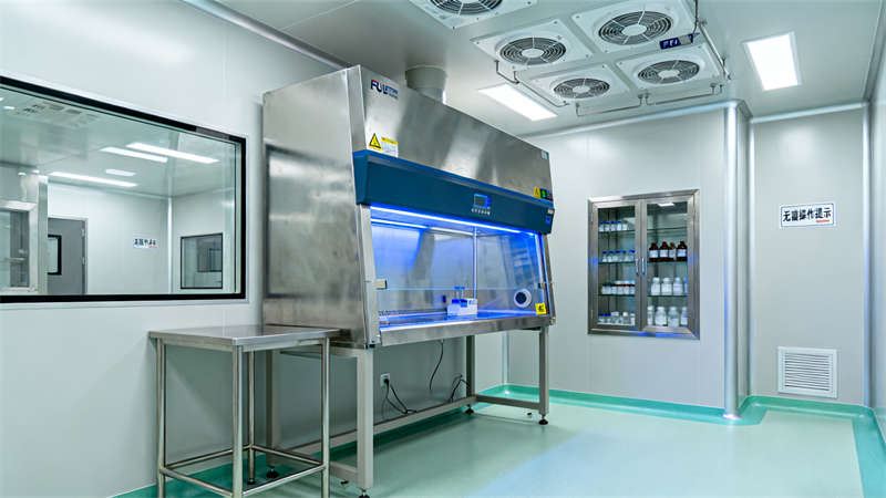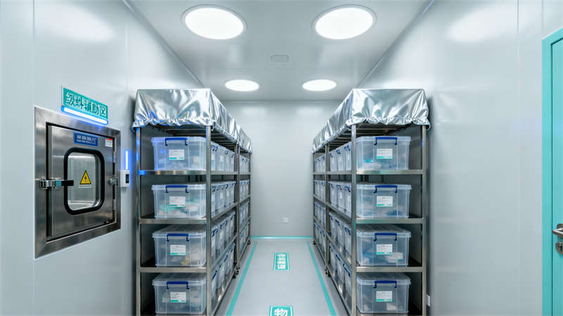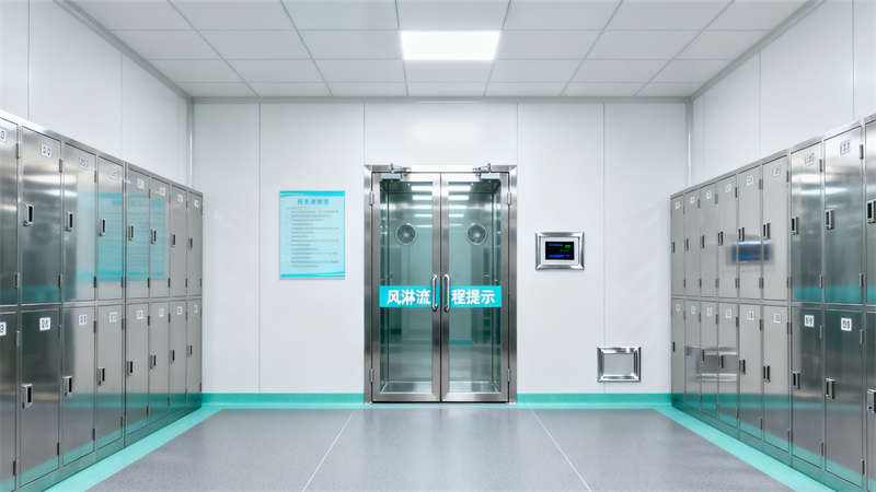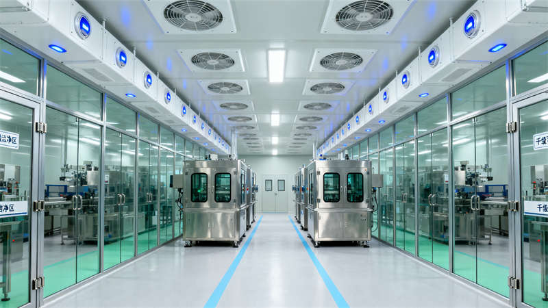 室內空間劃分清晰,入口風淋室作為潔凈第一道防線,搭配專屬衣柜區,助力人員規范進入;核心生產區以通透玻璃隔斷劃分,搭配高效過濾設備,營造潔凈通透的操作環境,操作人員身著專業潔凈服,盡顯規范作業氛圍。輔助區域同樣注重細節,物料暫存間采用防塵物料架與傳遞窗設計,確保物料潔凈存儲與轉運;無菌實驗室配置專業安全柜與試劑柜,滿足高潔凈等級操作需求;潔凈走廊通過清晰標識引導動線,連接各功能區域,提升空間流轉效率;空調機房作為動力核心,設備布局規整,保障整體潔凈系統穩定運行。?