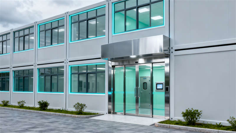 本設計以潔凈需求為核心,兼顧功能實用性與空間協調性,打造適配多場景的無塵環境。外觀上,建筑主體采用簡潔的淺灰色調,搭配密封性能優良的玻璃外窗與感應式自動門,既凸顯工業質感,又從源頭減少外界污染侵入。?